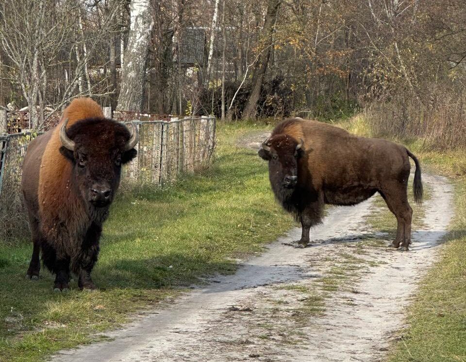 Згодом бізонів знову побачили біля одного з сіл. Щоб убезпечити тварин, їх тимчасово перевели на місцеву ферму. Після огляду вирішили відвезти пару до одного з найбільших вольєрів філії – у Явненському лісництві, де для цього створені безпечні умови.