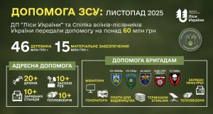 Протягом листопада передано близько 200 одиниць матеріального забезпечення у понад 25 бригад, де служать воїни-лісівники.