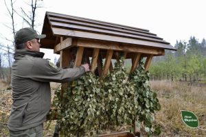 Наприклад, для підгодівлі тварин у мисливських угіддях філії “Центральний лісовий офіс” облаштована розгалужена система біотехнічних споруд: 578 підгодівельних майданчиків, 795 годівниць, 1485 солонців та інші об’єкти, де тваринам залишають кормові віники, зерно, кукурудзу та сіль. Усі такі майданчики розміщують у віддалених і малодоступних місцях та на шляхах міграції звірів, щоб вони могли почуватися спокійно та безпечно.