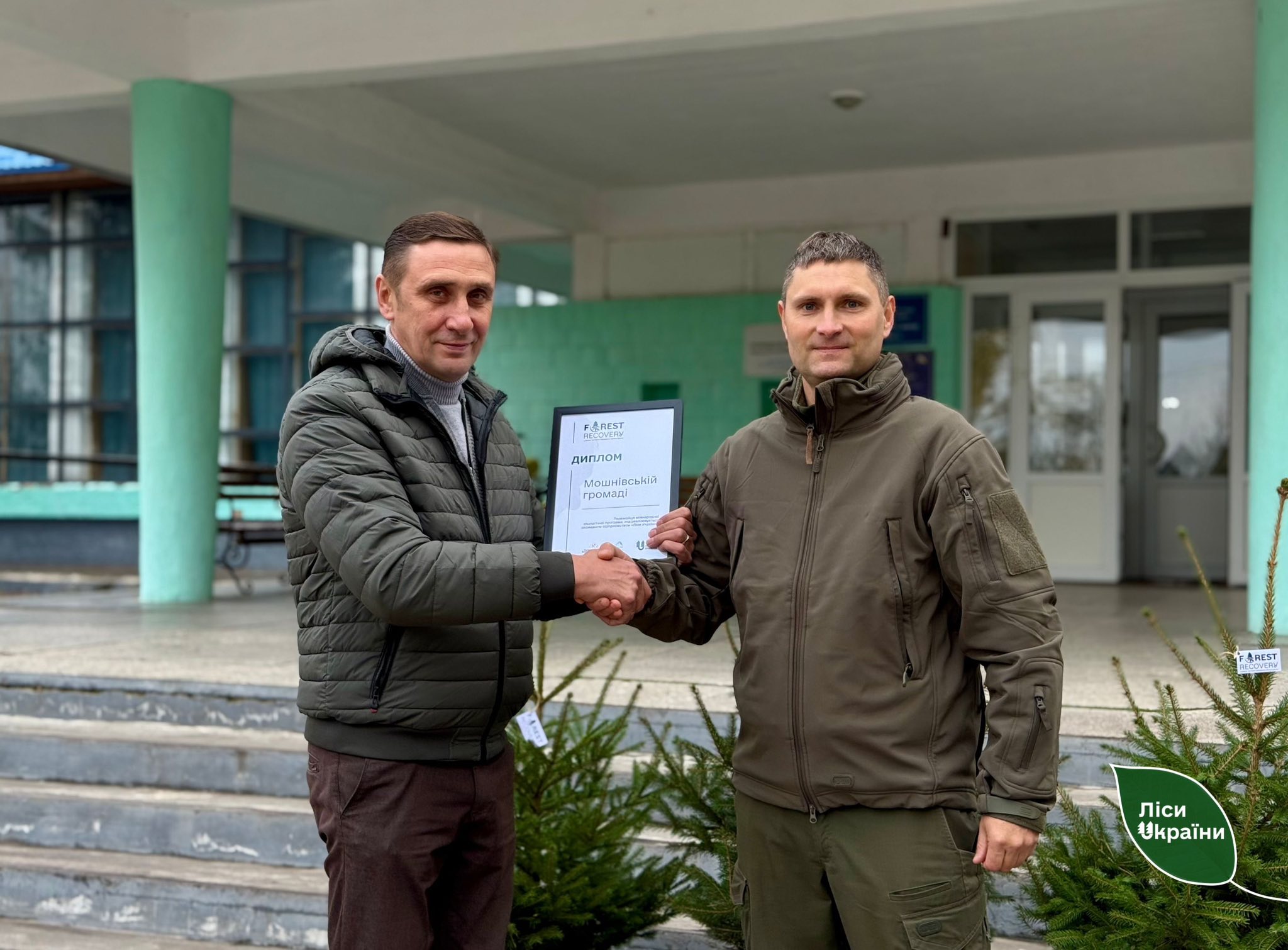 Сьогодні керівництву Мошнівської громади вручили диплом FOREST RECOVERY, який є свідченням чіткої екологічної позиції громади та її відповідального ставлення до збереження природи. Разом із відзнакою лісівники передали саджанці ялини, якими у громаді доповнять алею загиблих героїв.