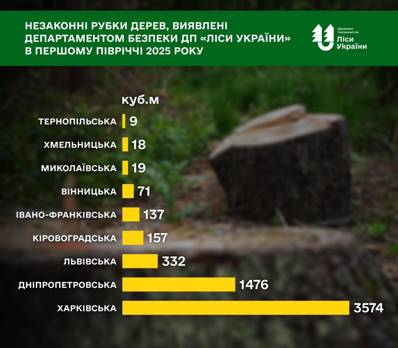 Найменше незаконних рубок деревини зафіксовано у філії “Південний лісовий офіс” – Одещині та Миколаївщині, а також на Тернопільщині та Хмельниччині у філії “Подільський лісовий офіс”.